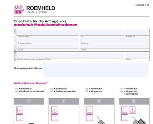 Laden Sie sich die Checkliste für die Anfrage von moduhub Modulkombinationen herunter und senden uns das ausgefüllte Formular zu: