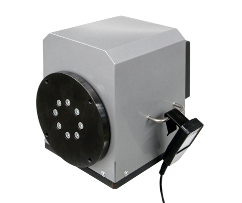 Das Drehmodul DMHe 140 ist eine elektrisch angetriebene Drehachse zum Handhaben und Positionieren von Werkstücken. Der Elektromotor treibt auf Tastendruck ein Schneckengetriebe an. Der Antrieb ist selbsthemmend, er hält also jede beliebige Zwischenposition zuverlässig, ohne dass eine zusätzliche Bremse benötigt wird.