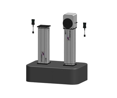 Die im Außenprofil integrierten Nuten ermöglichen die Befestigung von Schottleisten, Ablagen und Halterungen, die sich bei entsprechender Ausrichtung der Hubachse während des Verfahrens mitbewegen oder in Relation zum Werker verharren. Die Installation mit dem Außenprofil mit den Nuten oben bietet eine verbesserte Beständigkeit gegen Staub und Schmutz. Bedient werden die Säulen alternativ per Hand- oder Fußtaster. Akkus für eine unabhängige Stromversorgung gehören ebenso wie Dreh- und Wagenmodule zum umfangreichen moduhub-Baukasten.