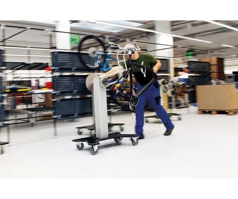 Bike proMobil was specially developed for the highly flexible series assembly of bicycles. Rigid line structures can thus be dispensed with and the assembly flow can be individually adapted according to the order situation and model range. Since no external power is required for operation, Bike proMobil can be put into operation immediately anywhere.