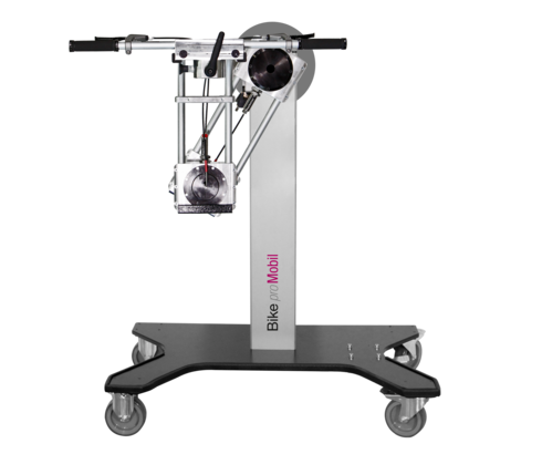 Bike proMobil is a mobile, manually operated assembly fixture for bicycles. The adjustable